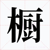 (形声。从木,厨声。本义:放置东西的家具)同本义〖cabinet〗。如:橱子(放置衣物的柜子);橱簏(指装书用的橱箱);衣橱;碗橱儿;壁橱;书橱