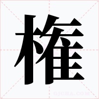 “権” 字共有 15 画,拼音:quán,注音:ㄑㄩㄢˊ,部首:木,笔画数:15 画,字体结构:左右结构,五行:木,五笔:SRWY,Unicode编码:U+6A29,郑码:FMAN,仓颉:DOKG,“権”字笔顺为:一丨ノ丶ノ一一ノ丨丶一一一丨一