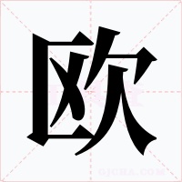 通“瓯”。种族名〖Onatitonality〗。如:欧人(古越族的一支);亦为地名。如:欧越(即瓯越。古越人聚居之地)