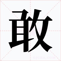 又如:敢毅(勇敢刚毅);敢士(勇士);敢直(果敢正直);敢勇(果敢英勇);敢断(果敢决断)