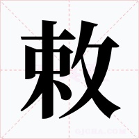 “敕” 字共有 11 画,拼音:chì,注音:ㄔˋ,部首:攵,笔画数:11 画,字体结构:左右结构,五行:火,五笔:GKIT,Unicode编码:U+6555,郑码:FJMO,仓颉:DLOK,“敕”字笔顺为:一丨フ一丨ノ丶ノ一ノ丶