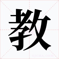 (会意。从攴(pū),从孝,孝亦声。“攴”,篆体象以手持杖或执鞭。在奴隶社会,奴隶主要靠鞭杖来施行他们的教育、教化。本义:教育,指导)
