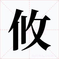 (会意。从攴(pū),从人水省。表示人扶杖走水路。本义:水流的样子)