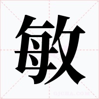 “敏” 字共有 11 画,拼音:mǐn,注音:ㄇㄧㄣˇ,部首:攵,笔画数:11 画,字体结构:左右结构,五行:水,五笔:TXGT,Unicode编码:U+654F,郑码:MAZM,仓颉:OYOK,“敏”字笔顺为:ノ一フフ丶一丶ノ一ノ丶