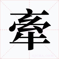 “牽” 字共有 11 画,拼音:qiān,注音:ㄑㄧㄢ,部首:牛,笔画数:11 画,字体结构:上下结构,五行:火,五笔:YXPH,Unicode编码:U+727D,郑码:SZWM,仓颉:YVBQ,“牽”字笔顺为:丶一フフ丶丶フノ一一丨