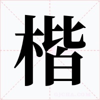 (形声。从木,皆声。①(jiē)本义:木名。即“黄连木”。楷树枝干疏而不屈,因以形容刚直②法式,典范)