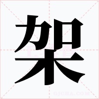 又如:十字架;三脚架;架桩(原指吃完鸡鸭剩的骨架,江湖暗语指人的尸体);架阁(官署中用以保存公文案卷的木架;借指耽搁,放在一旁不管)