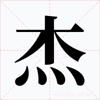 (形声。从人,桀(jié)声。杰为傑的俗字。本义:才智出众的人)