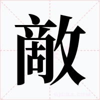 “敵” 字共有 15 画,拼音:dí,注音:ㄉㄧˊ,部首:攵,笔画数:15 画,字体结构:左右结构,五行:火,五笔:UMDT,Unicode编码:U+6575,郑码:SULM,仓颉:YBOK,“敵”字笔顺为:丶一丶ノ丨フ一丨丨フ一ノ丨ノ丶