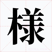 “様” 字共有 14 画,拼音:yàng,注音:ㄧㄤˋ,部首:木,笔画数:14 画,字体结构:左右结构,五行:木,五笔:SUGI,Unicode编码:U+69D8,郑码:FUKV,仓颉:DTGE,“様”字笔顺为:一丨ノ丶丶ノ一一丨一丨フノ丶