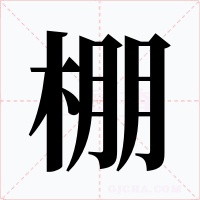 (形声。从木,朋声。本义:用竹、木搭成的篷架或小屋)