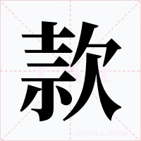 又如:不中于款(不合规格。中,符合。款,款式,规格);款制(式样);款儿(样子;式样。引申为“架子”)