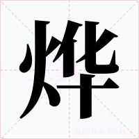 又如:烨然(光彩鲜明的样子);烨烨(明亮;灿烂;鲜明);烨烁(光耀);烨煜(光华闪烁的;乐音繁盛);烨赫(辉煌显赫);烨熠(光耀)