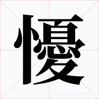 “懮” 字共有 18 画,拼音:yōu,注音:ㄧㄡ|ㄧㄡˇ,部首:忄,笔画数:18 画,字体结构:左右结构,五行:金,五笔:NDET,Unicode编码:U+61EE,郑码:UAWR,仓颉:PMBE,“懮”字笔顺为:丶丶丨一ノ丨フ一一丶フ丶フ丶丶ノフ丶