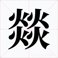 “燚” 字共有 16 画,拼音:yì,注音:ㄧˋ,部首:火,笔画数:16 画,字体结构:上下结构,五行:火,五笔:OOOO,Unicode编码:U+71DA,郑码:UOUU,仓颉:FFFF,“燚”字笔顺为:丶ノノ丶丶ノノ丶丶ノノ丶丶ノノ丶