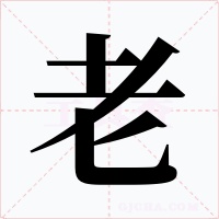“老” 字共有 6 画,拼音:lǎo,注音:ㄌㄠˇ,部首:耂,笔画数:6 画,字体结构:上下结构,五行:火,五笔:FTXB,Unicode编码:U+8001,郑码:BMRR,仓颉:JKP,“老”字笔顺为:一丨一ノノフ