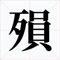 “殞” 字共有 14 画,拼音:yǔn,注音:ㄩㄣˇ,部首:歹,笔画数:14 画,字体结构:左右结构,五行:金,五笔:GQKM,Unicode编码:U+6B9E,郑码:ARJL,仓颉:MNRBC,“殞”字笔顺为:一ノフ丶丨フ一丨フ一一一ノ丶