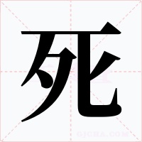 (会意。小篆字形。右边是人,左边是“歺”(è),残骨,指人的形体与魂魄分离。本义:生命终止)