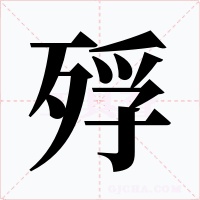 (形声。从歹,孚声。歹(è)。列骨之残。此部之字多与死、不吉祥等义有关。本义:饿死后无人收尸的人)同本义〖exposedbodiesofthosewhodiedofhunger〗