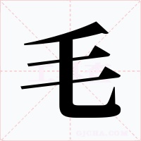 (象形。金文字形。“毛”是汉字的一个部首,从“毛”的字多与皮毛有关。本义:眉毛、头发、兽毛)