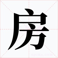 (形声。从户,方声。上古边室皆用单扇门(即“户”),庙门大门才用双扇门,故“房”从“户”。本义:正室左右的住室)