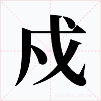 “戍” 字共有 6 画,拼音:shù,注音:ㄕㄨˋ,部首:戈,笔画数:6 画,字体结构:独体字,五行:土,五笔:DYNT,Unicode编码:U+620D,郑码:HMS,仓颉:IHI,“戍”字笔顺为:一ノ丶フノ丶