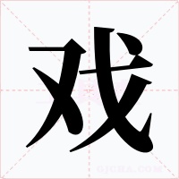 通“麾”。将军的旌旗〖standardofacommander〗。如:戏戟(有旗的戟);戏下(在主帅的旌麾之下。引申为部下)