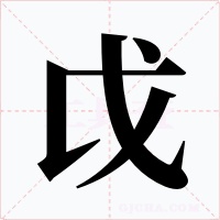 “戉” 字共有 5 画,拼音:yuè,注音:ㄩㄝˋ,部首:戈,笔画数:5 画,字体结构:独体字,五行:金,五笔:ANYT,Unicode编码:U+6209,郑码:HMZ,仓颉:IV,“戉”字笔顺为:一フフノ丶