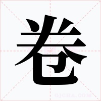 古指书的卷轴,今为书籍的通称〖book〗。如:卷帙(指书。可舒卷的叫卷,编次的叫帙);卷末(书卷的末尾);卷次(卷第。书籍按卷分的次序);卷尾(书籍字画的末尾处)