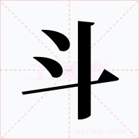 又如:斗箕(斗星和箕星);斗君(道家语。指北斗之神);斗斋(供奉斗星之处;亦指斗星神);斗魁(魁星。北斗七星中形成斗形的四颗星);斗杓(北斗七星形似勺,柄上的三颗星叫杓,斗杓指向东,时令交替)