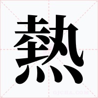 “熱” 字共有 15 画,拼音:rè,注音:ㄖㄜˋ,部首:灬,笔画数:15 画,字体结构:上下结构,五行:金,五笔:FWFO,Unicode编码:U+71B1,郑码:BOSU,仓颉:GIF,“熱”字笔顺为:一丨一ノ丶一丨一ノフ丶丶丶丶丶