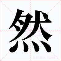 又如:然海(古代传说中的油海,其水可燃);然脂(点油脂或蜡烛照明);然灰(死灰复燃);然除(烧毁);然火(点火);然炬(点燃火炬);然脂(泛指点燃火炬);然犀(传说点燃犀牛的角可以照见怪物。后以明察事务为然犀);然灯(点灯)