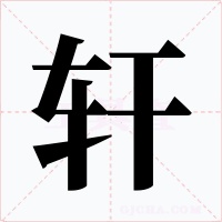 古代一种有围棚或帷幕的车:轩驾(帝王的车驾)。轩冕(卿大夫的车和礼服是分等级的,借以指官爵禄位)。轩轾(车前高后低称“轩”,车前低后高称“轾”,用来喻高低优劣)。