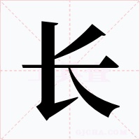 (象形。甲骨文字形,象人披长发之形,以具体表抽象,表示长短的“长”。本义:两点距离大)