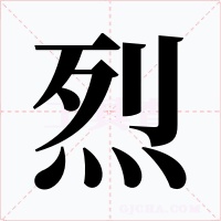 “烈” 字共有 10 画,拼音:liè,注音:ㄌㄧㄝˋ,部首:灬,笔画数:10 画,字体结构:上下结构,五行:火,五笔:GQJO,Unicode编码:U+70C8,郑码:ARKU,仓颉:MNF,“烈”字笔顺为:一ノフ丶丨丨丶丶丶丶