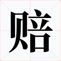 “赔” 字共有 12 画,拼音:péi,注音:ㄆㄟˊ,部首:贝,笔画数:12 画,字体结构:左右结构,五行:水,五笔:MUKG,Unicode编码:U+8D54,郑码:LOSJ,仓颉:BOYTR,“赔”字笔顺为:丨フノ丶丶一丶ノ一丨フ一
