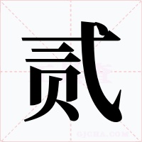 “贰” 字共有 9 画,拼音:èr,注音:ㄦˋ,部首:贝,笔画数:9 画,字体结构:半包围结构,五行:金,五笔:AFMI,Unicode编码:U+8D30,郑码:HSBL,仓颉:IPMMO,“贰”字笔顺为:一一一丨フノ丶フ丶