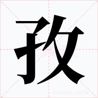 (形声。从攴(pū),子声。攴,击打。不断敲击自己,才能努力不懈,故从攴。本义:双音词“孜孜”,勤勉、努力不懈的样子)