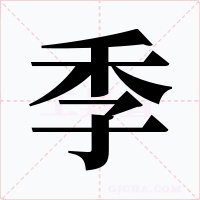 “季” 字共有 8 画,拼音:jì,注音:ㄐㄧˋ,部首:子,笔画数:8 画,字体结构:上下结构,五行:木,五笔:TBF,Unicode编码:U+5B63,郑码:MFYA,仓颉:HDND,“季”字笔顺为:ノ一丨ノ丶フ丨一