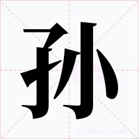 又如:孙息(子孙);孙子(子孙后代);孙男弟女(泛指晚辈)