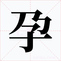 (会意。甲骨文字形,外象妇女大腹之形,内象腹中怀子之形。本义:怀胎)