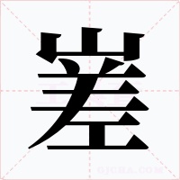 “嵳” 字共有 12 画,拼音:cuó,注音:ㄘㄨㄛˊ,部首:山,笔画数:12 画,字体结构:上下结构,五行:土,五笔:MUDA,Unicode编码:U+5D73,郑码:LLUB,仓颉:XUTQM,“嵳”字笔顺为:丨フ丨丶ノ一一一ノ一丨一
