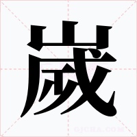 “嵗” 字共有 12 画,拼音:suì,注音:ㄙㄨㄟˋ,部首:山,笔画数:12 画,字体结构:上下结构,五行:土,五笔:MDGT,Unicode编码:U+5D57,郑码:LLAK,仓颉:UIHH,“嵗”字笔顺为:丨フ丨一ノ一丨ノノフノ丶