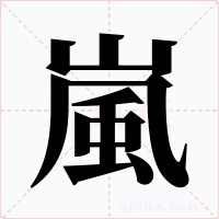 “嵐” 字共有 12 画,拼音:lán,注音:ㄌㄢˊ,部首:山,笔画数:12 画,字体结构:上下结构,五行:土,五笔:MMTJ,Unicode编码:U+5D50,郑码:LLQI,仓颉:UHNI,“嵐”字笔顺为:丨フ丨ノフノ丨フ一丨一丶