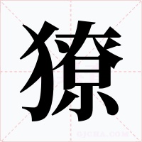 “獠” 字共有 15 画,拼音:lǎo,liáo,注音:ㄌㄧㄠˊ,部首:犭,笔画数:15 画,字体结构:左右结构,五行:火,五笔:QTDI,Unicode编码:U+7360,郑码:QMKK,仓颉:KHKCF,“獠”字笔顺为:ノフノ一ノ丶丶ノ丨フ一一丨ノ丶
