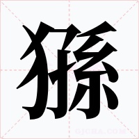 “猻” 字共有 13 画,拼音:sūn,注音:ㄙㄨㄣ,部首:犭,笔画数:13 画,字体结构:左右结构,五行:火,五笔:QTBI,Unicode编码:U+733B,郑码:QMMZ,仓颉:KHNDF,“猻”字笔顺为:ノフノフ丨一ノフフ丶丨ノ丶