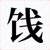 (形声。从食,戋(qiān)声。本义:设酒食送行)