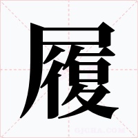 (会意。小篆字,从尸,即人;从彳(chì),表示与行走有关。履在战国以前一般只作动词用。一般用“屦”称鞋子。用“鞋”是唐以后的事了。本义:践踏)
