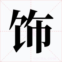 又如:首饰;衣饰;花饰;窗饰;饰巾(戴头巾为饰,而不加冠冕)