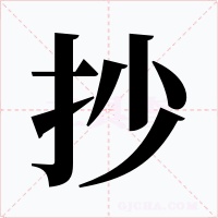 抄写〖copy;transcribe〗。如:抄集(抄录编集);抄白(抄本;副本)